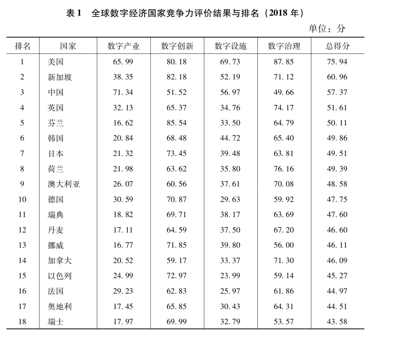 由上海社科院主编的《全球数字经济竞争力发展报告(2019)》(下称“《报告》”)日前正式发布。《报告》显示,在国家竞争力层面,2018年,美国、新加坡、中国占据全球数字经济国家竞争力榜单前三。