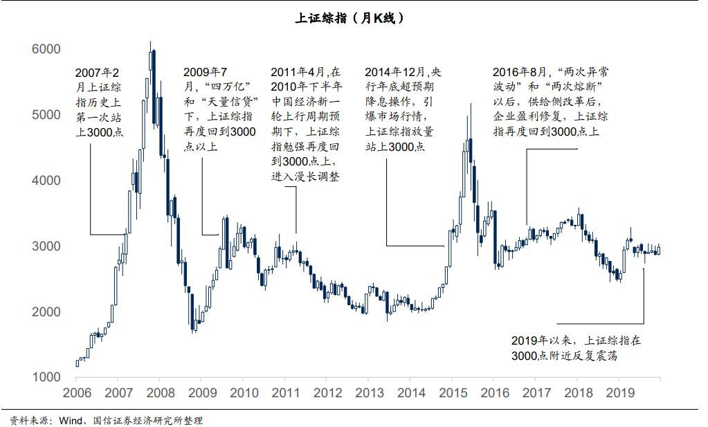 从2007年2月上证指数收盘首度站上3000点,截至2019年12月26日,据国信证券统计,上证指数已经46次站上3000点。
