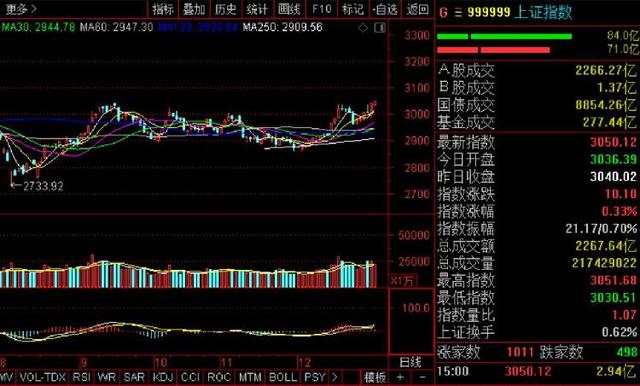截至收盘,沪指报3050.12点,涨0.33%;深成指报10430.77点,涨0.63%;创指报1798.12点,涨0.44%。