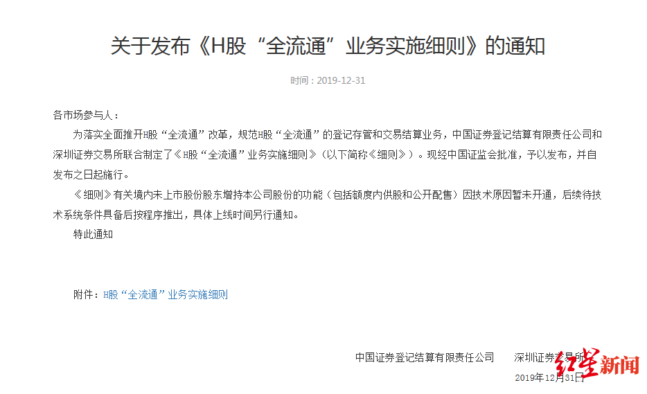 12月31日,深交所发布《H股“全流通”业务实施细则》。