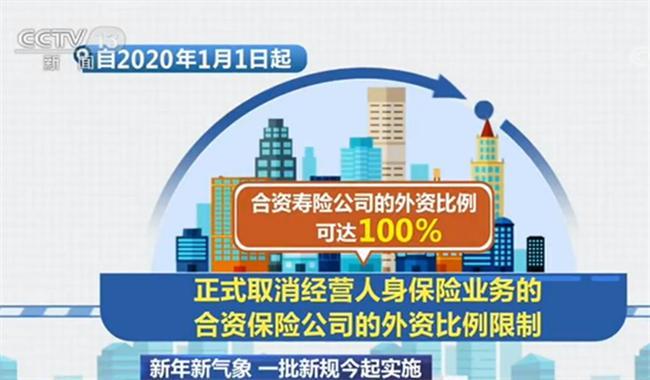 :记者从银保监会了解到,从今天(2020年1月1日)起合资寿险公司的外资比例限制就正式取消了。