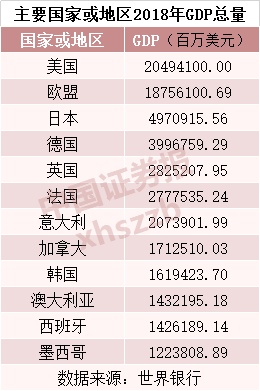 2019年中国GDP总量接近100万亿,这在全球主要经济体中处于什么位置?