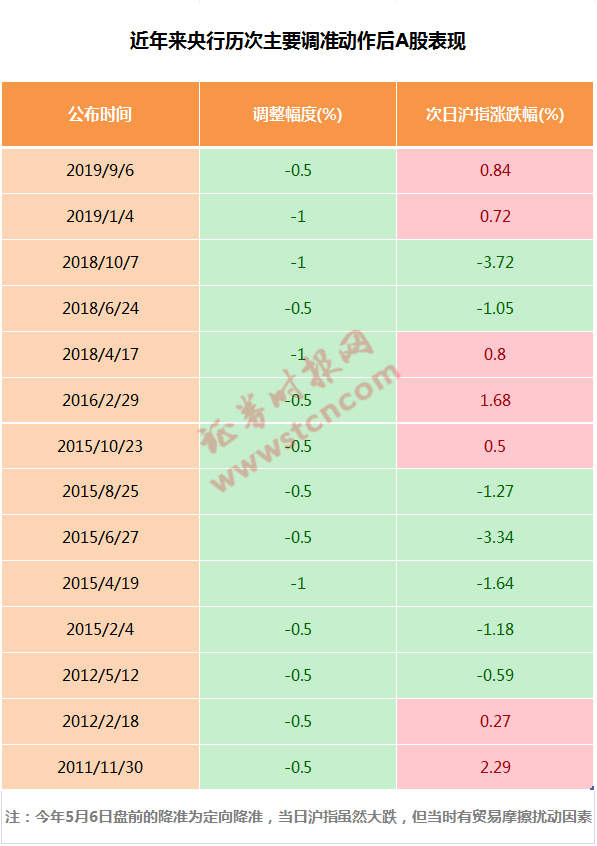 从历次降准后股市的表现看,降准通常会利好股市。有历史统计数据显示,A股市场在央行启动降准后的一个月、三个月、六个月内均涨多跌少。但从降准次日的股市表现看,沪指表现则是跌多涨少,这也与前期市场充分预期消化有关。