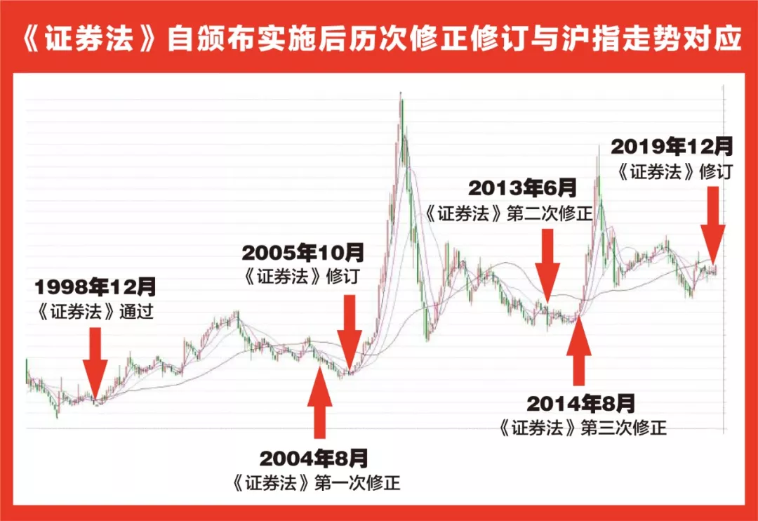2019年12月28日上午,十三届全国人大常委会第十五次会议全体会议审议通过了新修订的证券法。修订后的证券法将于2020年3月1日起施行。从历史行情来看,历次证券法修订修正并实施后对A股市场行情也会有较大的影响。