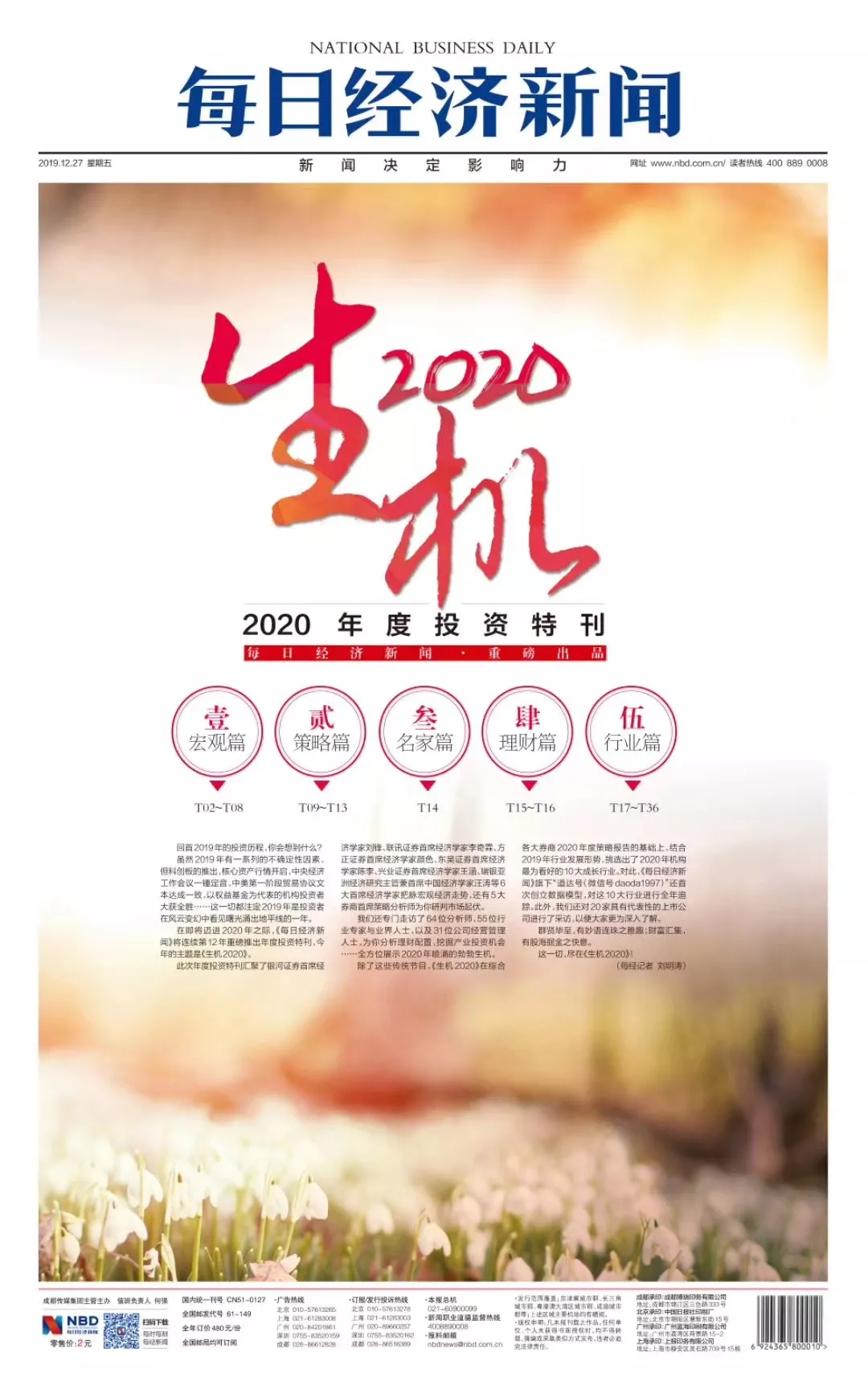 每逢岁末,《每日经济新闻》都将为读者提供精心烹制的“投资大餐”。在2019年12月27日,《每日经济新闻》已经推出了大型年度投资特刊——