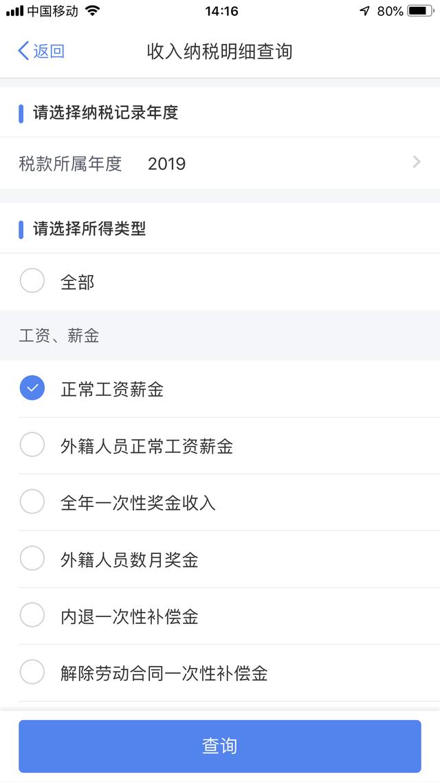 用户可以选择全部所得类型进行查询,也可以选择正常工资薪金、不同种类奖金或赔偿金、补贴、一般劳务报酬所得等分类查询,明确不同类别按月所得税款所属期、收入金额、扣缴义务人、已申报税额或应补(退)税额。