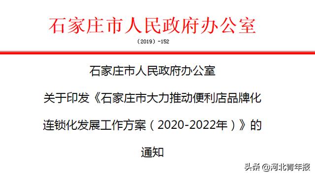 近日,石家庄市政府办公室印发《石家庄市大力推动便利店品牌化连锁化发展工作方案(2020-2022年)》(以下简称《方案》),推动全市便利店连锁化、品牌化、规范化、多样化发展,形成方便的城市“一刻钟”便民生活服务圈。