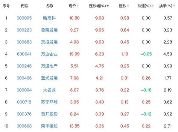 地产股方面,A股哈高科、鲁商发展、京投发展涨停,万业企业、万通地产、蓝光发展等大幅拉升。