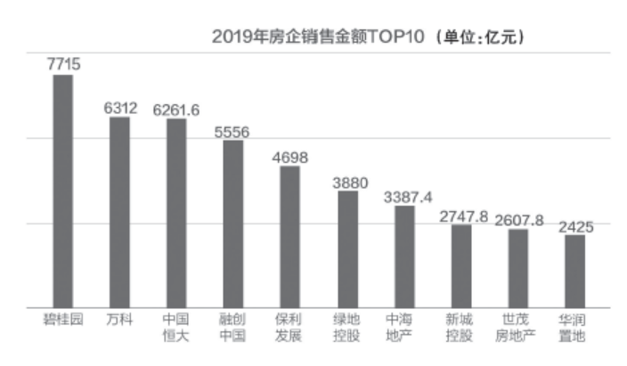 2019年12月31日晚,中指研究院发布《2019年中国房地产销售额百亿企业排行榜》(以下简称《排行榜》)显示,碧桂园继续蝉联销售冠军,全年销售额达7715亿元,比2018年增加569亿元,增长率7.96%;万科和恒大分列二三位;TOP10 最后两席,世茂站稳第九,华润与龙湖并列第十。