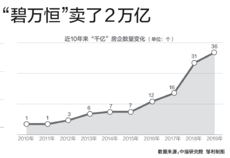 “千亿”正在成为房企新的业绩分水岭和目标。2019年,滨江、奥园、美的置业、中国铁建、龙光等成为“千亿”新贵。