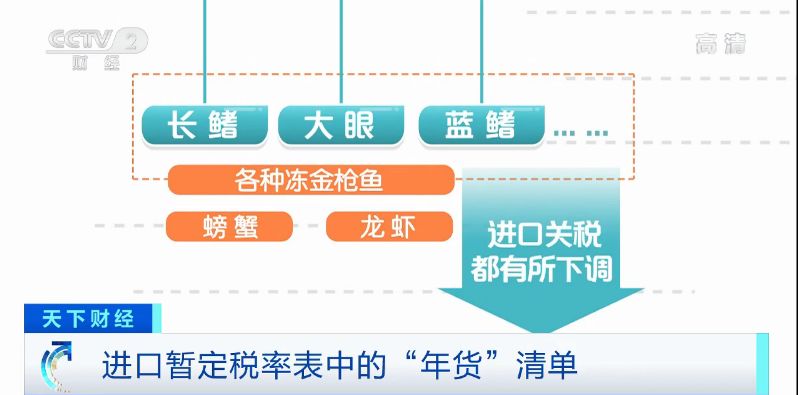 还有长鳍、大眼、蓝鳍等各种冻金枪鱼,和螃蟹、龙虾,进口关税都有所下调;
