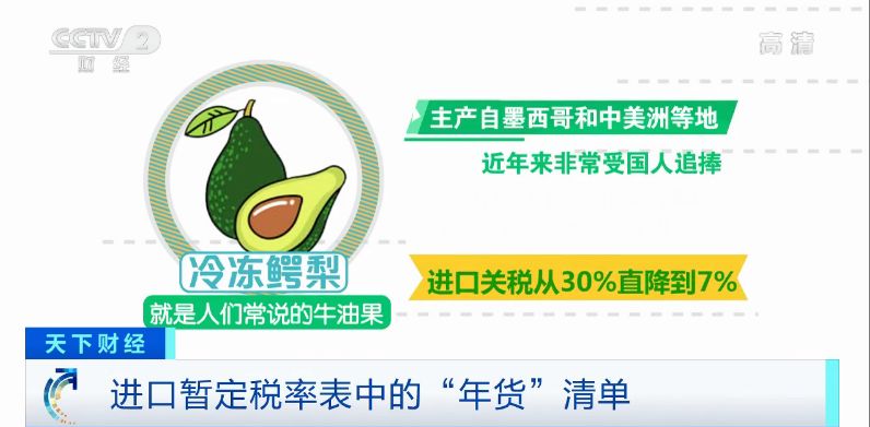 冷冻鳄梨,就是人们常说的牛油果,主产自墨西哥和中美洲等地,近年来非常受国人追捧,进口关税从30%直降到7%。