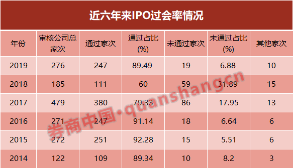 2019年是监管层推进IPO常态化的年份,2019年全年共审核276家(次)上会企业(含科创板),过会247家,过会率达89.49%。较2018年全年IPO过会率提升近30个百分点。