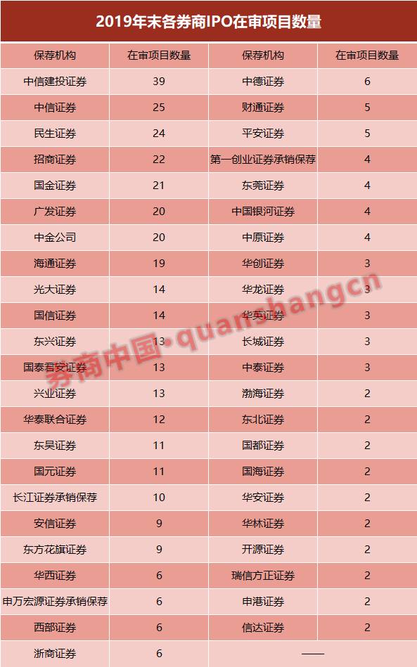 当然,就在今年3月1日,新《证券法》开始生效,中国资本市场将全面推行注册制,取消发审委。是否会影响这些保荐机构的项目进展呢?有券商投行负责人分析,应该不会影响项目进展,这些在审项目可能面临两种审核方法,一是“新老划断”,在审项目由发审委审核完毕;二是效仿科创板的注册制方法,先由交易所审核,接着由上市委审核,实质与审核制类似,最后报送证监会履行注册程序。