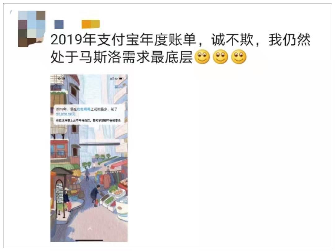 账单透露:“集五福”将再次开启2019年度账单将消费支出数据分为居家生活、穿衣打扮、吃吃喝喝、学习与健身、休闲娱乐、交通出行、通讯快递等种类,但用户无法在账单中看到细则。同时,用户还能看到自己一年里多少次用手机扫码方式公交出行、有多少次用支付宝缴费免跑腿。账单还汇总了2019年用户运动数据,其中包括累计步数与全年超过5000歩的天数,还有累计减排的kg数,几位朋友帮忙浇水收能量。如果用户参加了相互宝,账单也会披露相互宝帮助数据——帮助15325个家庭渡过难关。值得注意的是,年度账单还透露春节期间“集五福”活动将会再次开启。