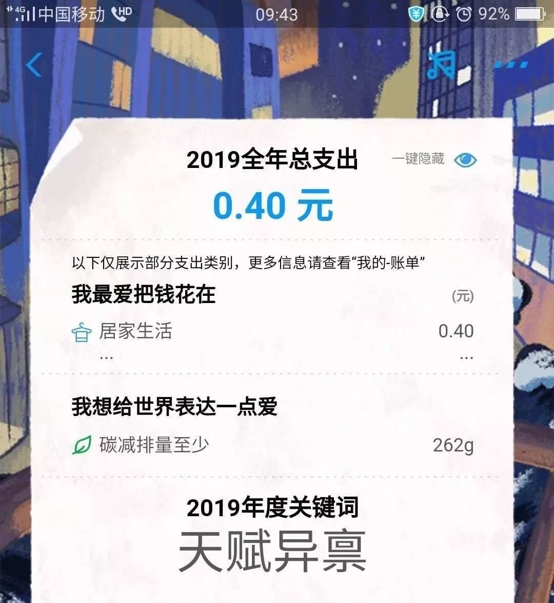 最后,支付宝账单给出了2019年全年总支出,你也可以一键隐藏。还可以挑选一个2020年的心愿。
