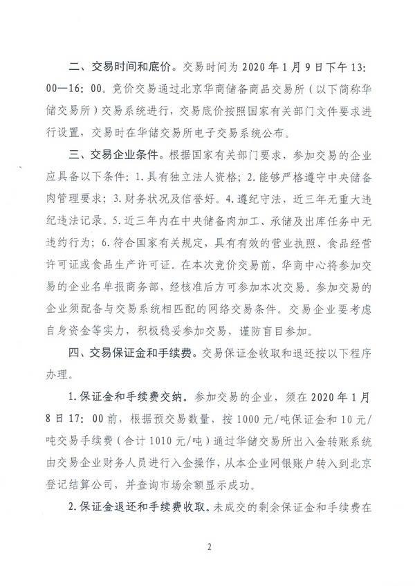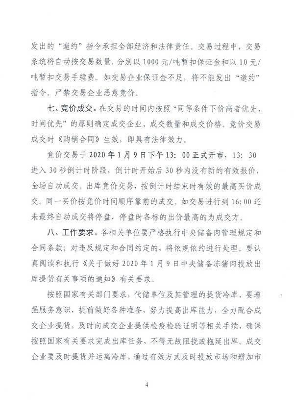 华储网发布2020年1月9日中央储备冻猪肉投放竞价交易有关事项的通知,将竞价交易2万吨。