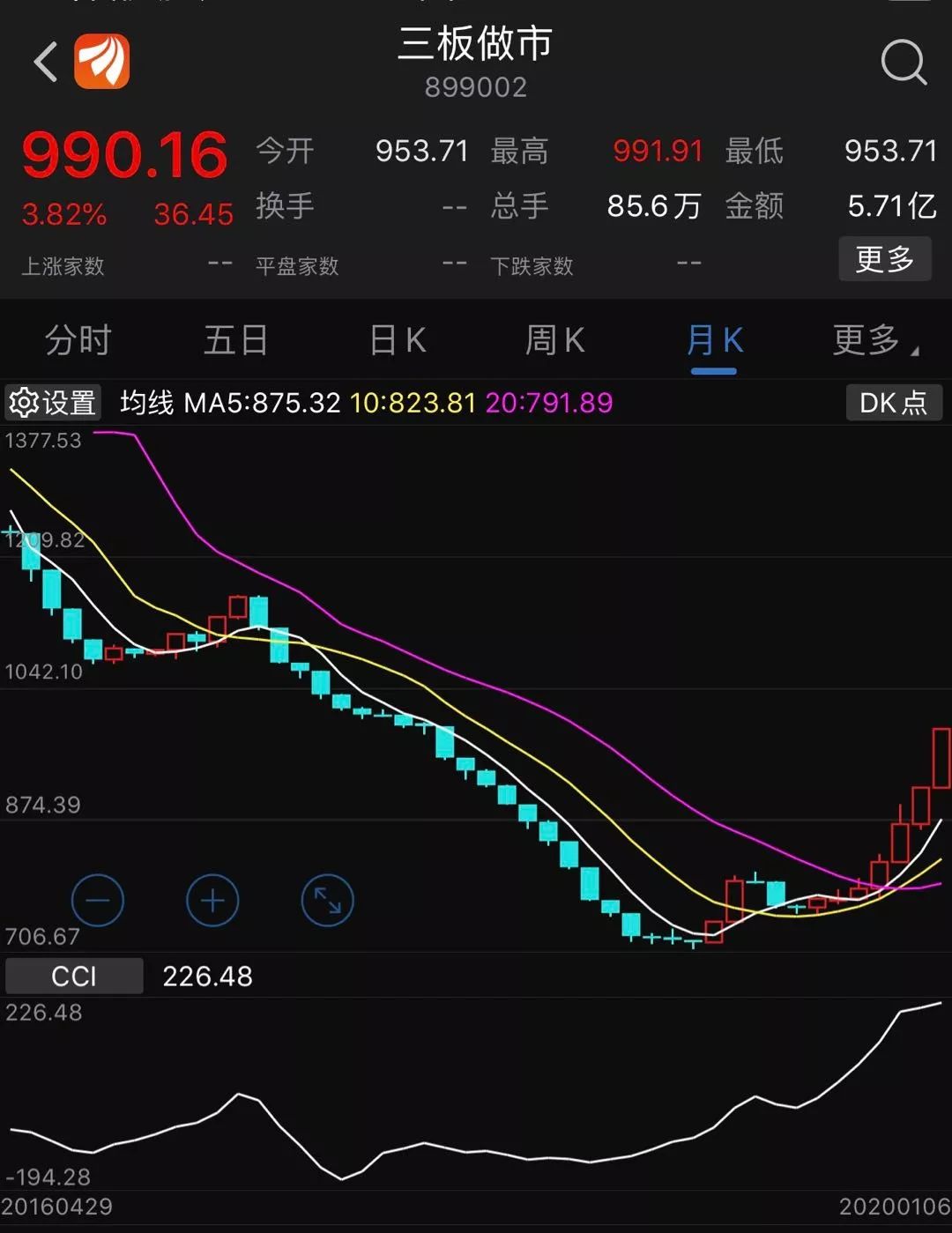 梳理三板做市指数月线可以发现,已经录得7连阳!
