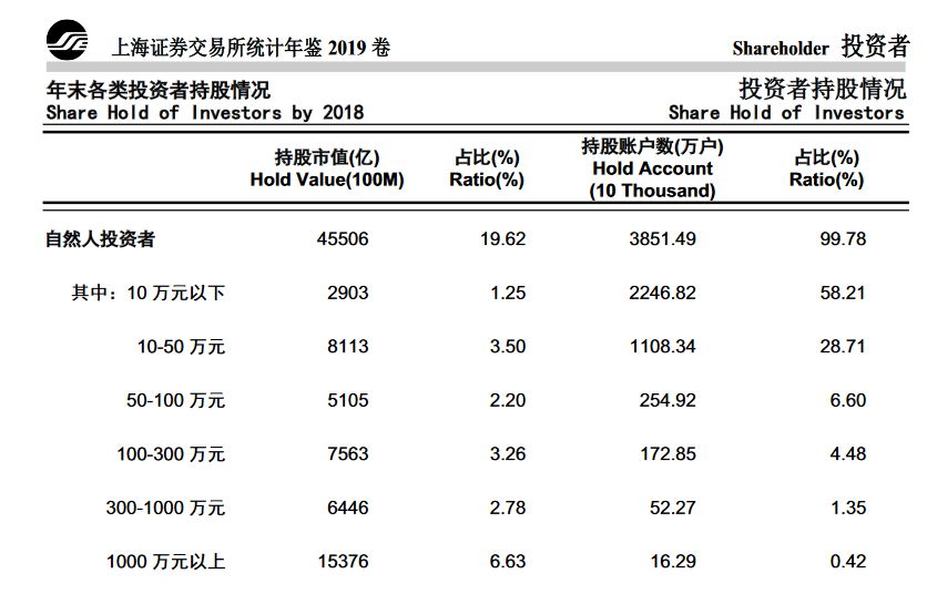 上交所统计年鉴数据显示,截至2018年底,1000万元以上和300万—1000万元之间的自然人占比分别为0.42%和1.35%,合计68.56万户;100—300万元的持股账户数量有172.85万户。在新三板精选层投资门槛降到100万元之时,将近241.41万户达到符合要求。而据安信证券新三板研究团队测算,精选层个人投资者或增至140万户左右。