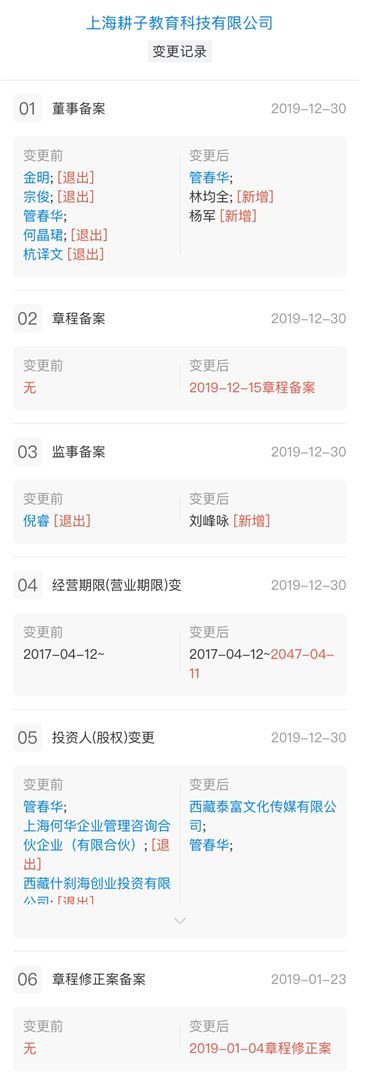 天眼查显示,2019年12月30日,妙小程发生过一系列工商变更,除管春华和西藏泰富文化传媒有限公司以外,以前的投资人均已退出。其中,西藏泰富文化传媒有限公司为三七互娱旗下的全资子公司。同时,妙小程的董事席位中新增了三七互娱集团高级副总裁杨军。
