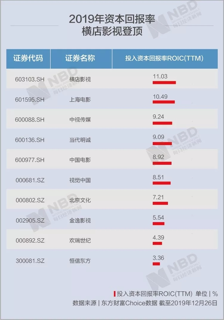 2019年资本回报率横店影视登顶