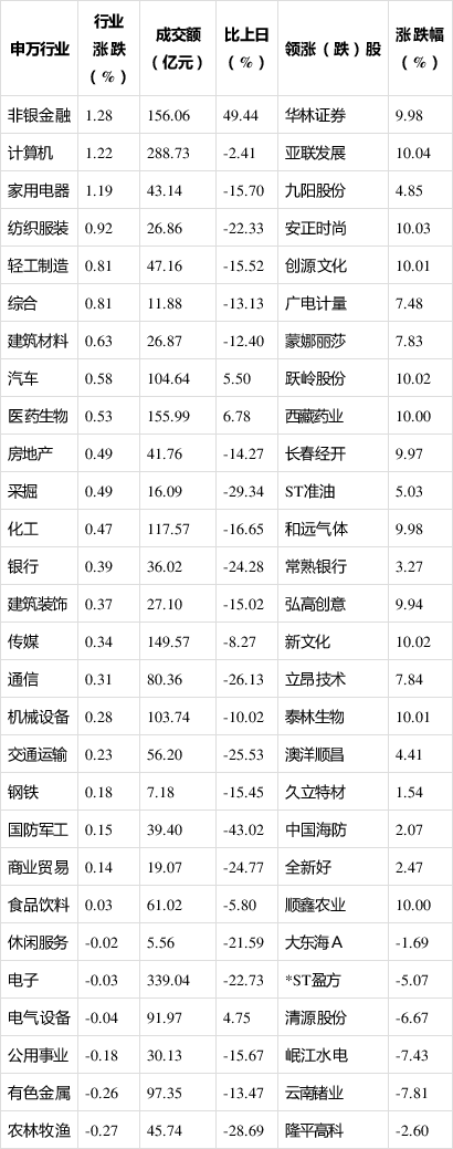 证券时报•数据宝统计,截至上午10:26,今日沪指涨幅0.47%,A股成交量183.75亿股,成交金额2226.19亿元,比上一个交易日减10.57%。个股方面,2105只个股上涨,其中非ST股涨停22只,1292只个股下跌,其中非ST股跌停3只。从申万行业来看,非银金融、计算机、家用电器等涨幅最大,涨幅分别为1.28%、1.22%、1.19%;农林牧渔、有色金属、公用事业等跌幅最大,跌幅分别为0.27%、0.26%、0.18%。(数据宝)