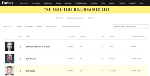 最新发布的《福布斯》世界富豪排行榜上,法国奢侈品巨头路威酩轩集团(LVMH)总裁兼CEO贝尔纳·阿尔诺(Bernard Arnault)取代了亚马逊创始人兼CEO杰夫·贝索斯(Jeff Bezos),登上榜首。