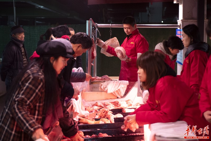 爹爹们都是“里手”。从伍家岭赶来的武朝湘老人用手戳一戳、按一按解冻的储备肉,频频点头:“颜色鲜,弹性足,标志印章齐,跟个体户卖的鲜肉没什么两样,还买得放心。”