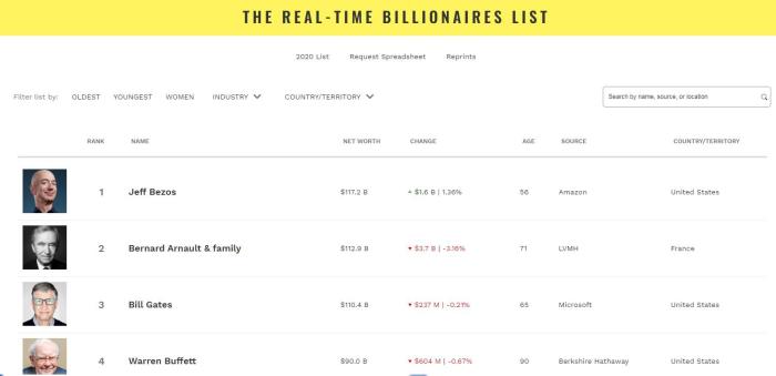 《福布斯》网站最新世界富豪排行榜。(图片截自《福布斯》杂志网站)