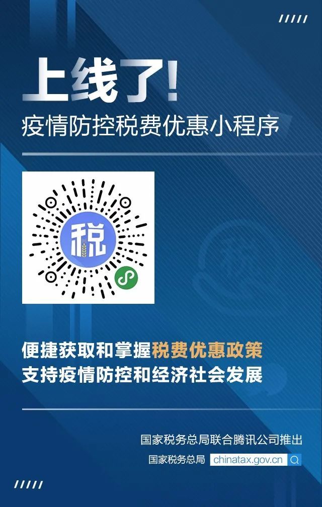 新冠肺炎疫情发生以来,国家税务总局联合有关部门,发布了一系列税费优惠政策,支持疫情防控和经济社会发展。为方便公众查询,国家税务总局联合腾讯公司共同推出了”疫情防控税费优惠“小程序。