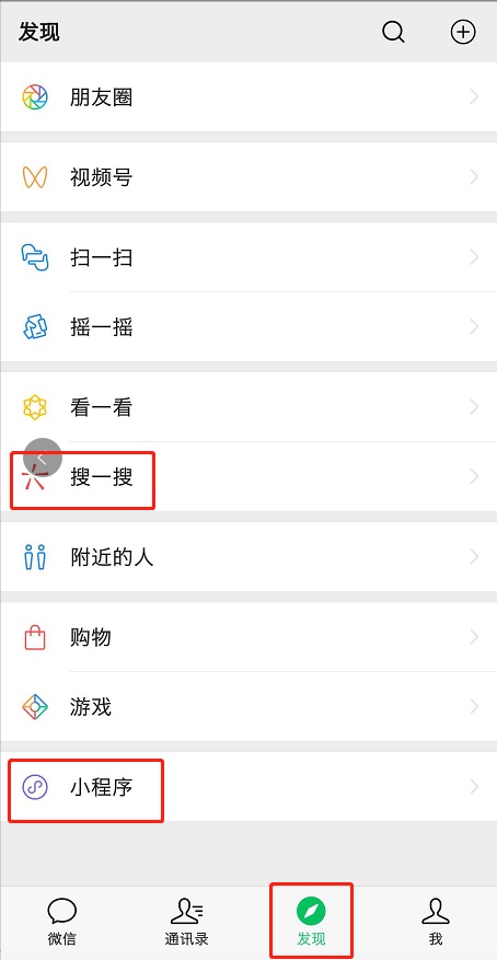 方式二:通过“微信——发现——搜一搜或小程序”搜索查看。