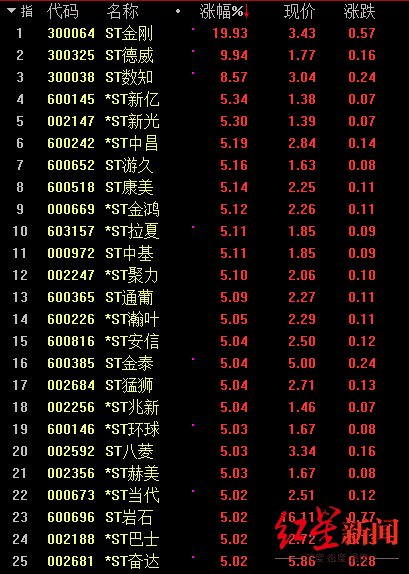 绩差ST板块也纷纷“作妖”:巨额亏损的*ST众泰(000980.SZ)连续12天涨停,近期已经先后出现25个涨停;*ST环球(600146.SH)5连板,近期先后出现17个涨停;*ST当代(000673.SZ)5连板,并且近期先后出现15个涨停;*ST赫美(002356.SZ)6连板,并且近期先后出现11个涨停。