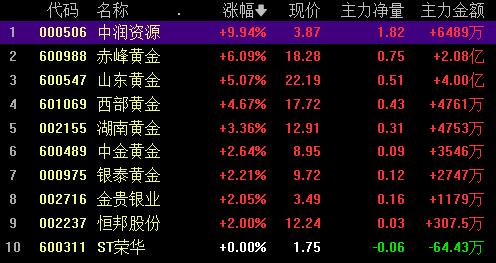 3月9日,贵金属板块持续走强,其板块整体涨3.8%,中润资源涨停,赤峰黄金、山东黄金等2只概念股涨幅也均逾5%。
