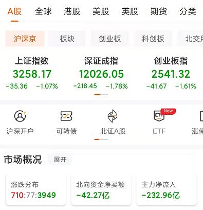3月9日,A股三大股指早盘冲高回落,三大指数均跌超1%,再创调整新低。截至午间收盘,上证指数跌1.07%,深证成指跌1.78%,创业板指跌1.61%。北向资金净流出42.27亿元。沪深两市近4000只个股下跌,同时有近40只个股涨幅达到或超过10%。