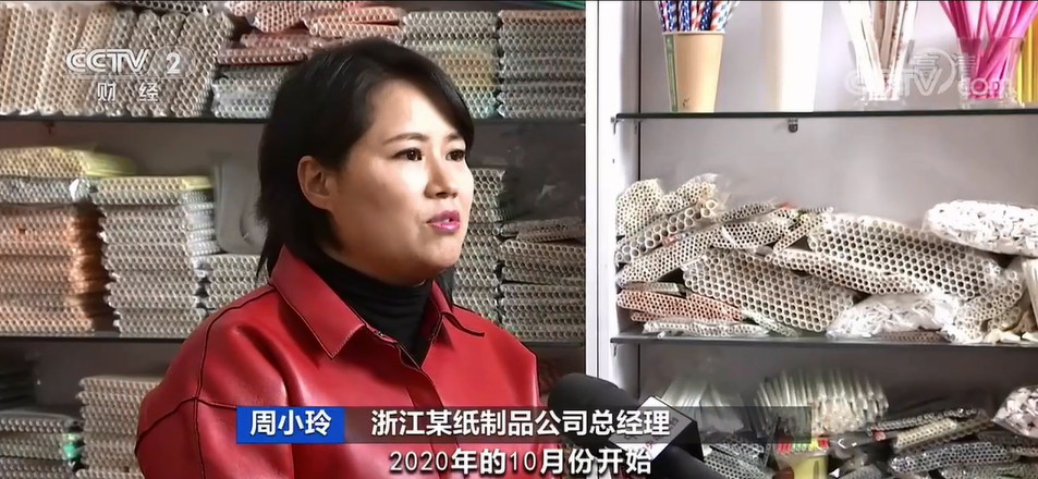 浙江某纸制品公司总经理 周小玲:2020年的10月份开始到2021年的4月份之间,纸吸管产能每天可以三到五百万支,每天都要出几百箱货。然后就是PLA(聚乳酸吸管)出来了,奶茶店的老板们说客户体验纸吸管不好,一下跌下来,没有什么订单。