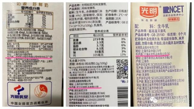 上海辟谣平台还收集了目前市场在售的数款光明乳业产品核查。其中,光明优倍鲜奶、光明致优鲜奶的生产商均显示为位于闵行区紫竹路的光明乳业华东中心工厂;光明优加纯牛奶的生产商是上海永安乳品有限公司等;光明如实风味发酵乳的生产商有武汉市的武汉光明乳品有限公司等。
