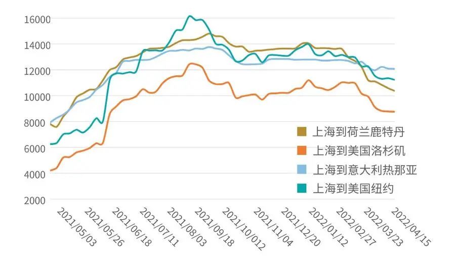 4月22日,上海航交所数据显示,最新上海出口集装箱运价指数较上周续跌32.67点至4195.98点,呈现连续14周的下跌,运价指数目前回落到去年8月之前的水平。
