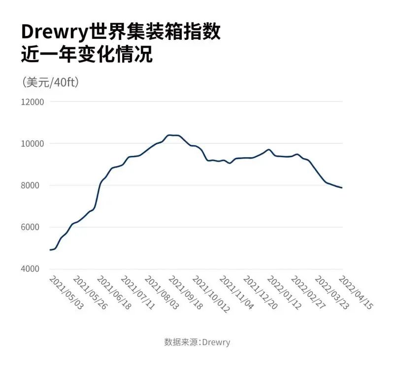 年初至今,航运咨询公司德鲁里(Drewry)编制的世界集装箱指数(WCI)已经下跌超16%。最新数据显示,WCI上周综合指数跌破8000美元每40英尺集装箱(FEU),环比下跌 0.9% ,回落至去年6月的运价水平。