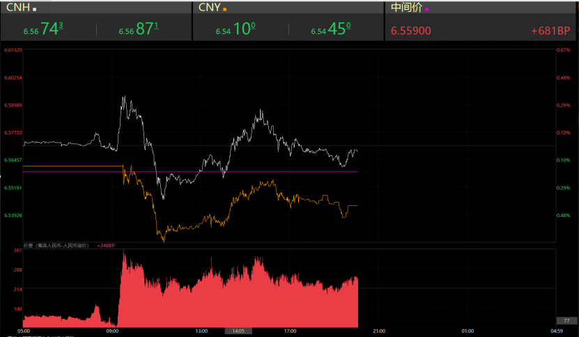 4月26日,人民币兑美元即期汇率,一度到6.5258,结束了此前连续五个交易日的贬值,出现企稳,小幅上涨态势。而更多反映国际投资者预期的离岸人民币兑美元汇率盘中一度升破6.55关口,但随后小幅回落。