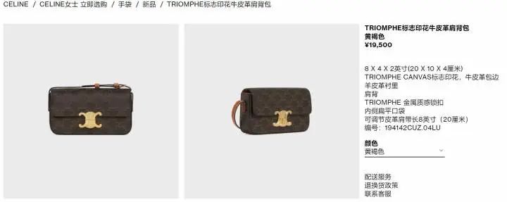 尽管从包款来看,Celine最近的每一次涨价都是覆盖部分产品,但总归是我涨完你涨,你涨完他涨。比如一款经典凯旋门老花的印花牛皮单肩包,从17000元一路涨到19500元,这一波涨价可能会破两万。