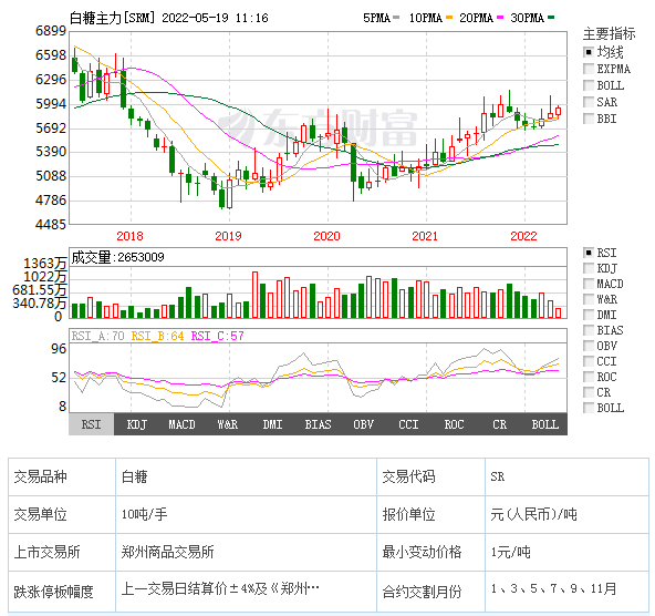 不仅国内糖现货价格波澜不惊,国内糖期货市场也反应平平。东方财富CHOICE终端显示,国内郑州商品交易所挂牌交易的糖主力合约走势呈现窄幅震荡格局,自2020年以来在4786元/吨至6000元/吨区间内持续盘整,区间波动幅度仅为1214元/吨。