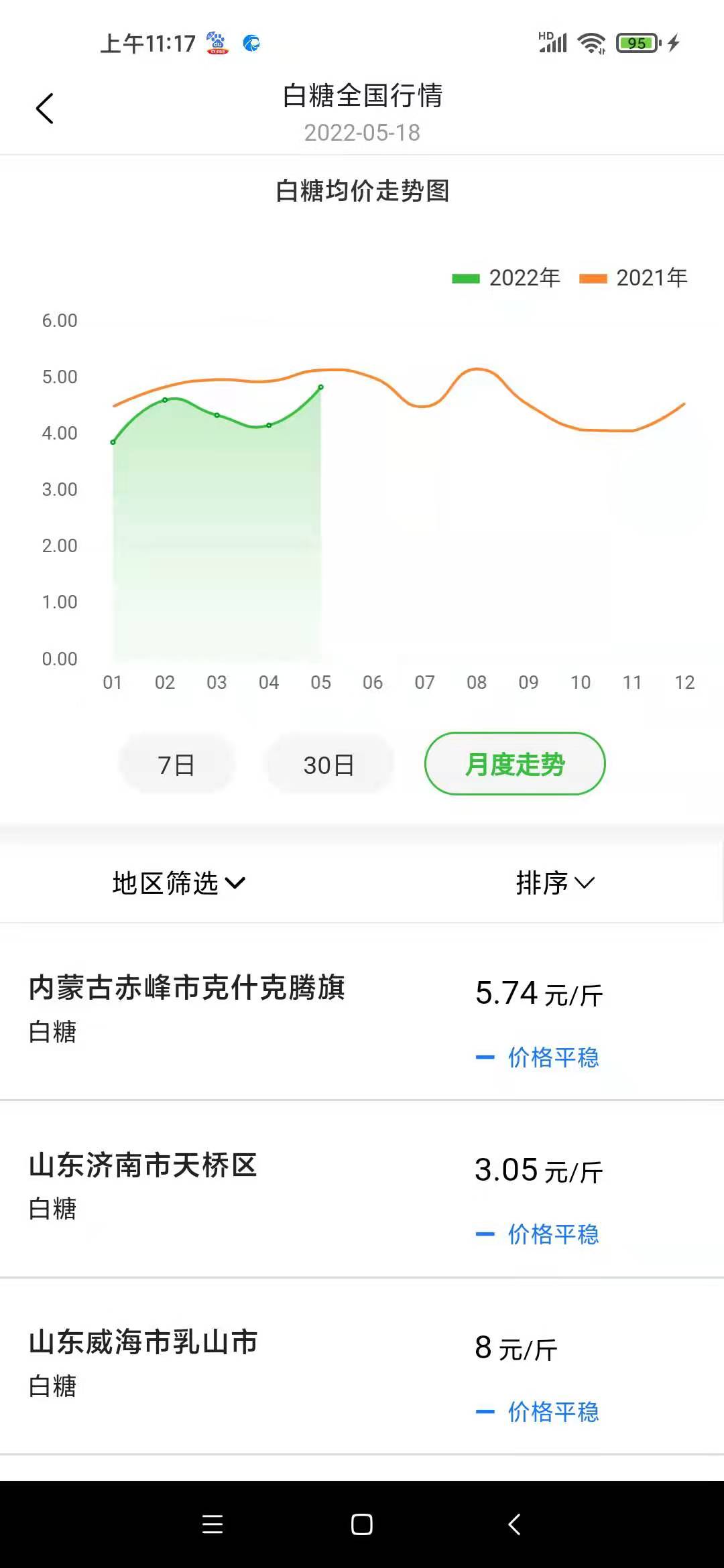 惠农网大数据平台显示,国内糖现货批发价格近2年来未有明显变化,国内糖批发均价围绕5元/斤上下窄幅波动。《证券日报》记者走访长沙多地超市,见散装糖均价仍在7元/斤,与年初相比并无变化。社区超市店长刘道飞表示,“没有听说糖厂要涨价,现在散装糖走货情况一般,餐饮门店拿货不积极,家庭用餐也消费不了太多糖。”