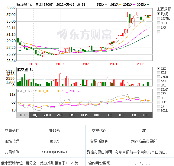 自巴基斯坦、哈萨克斯坦相续发布暂停糖出口后,近日巴西表示将取消部分糖出口合同,转为生产乙醇燃料。多种因素促使国际糖价表现强劲,东方财富CHOICE终端显示,纽约商品交易所挂牌交易的糖16号当月连续合约近年来表现强劲。自2020年较低点25.29点上涨至2022年较高点38.50点,累计涨幅达到52.23%。