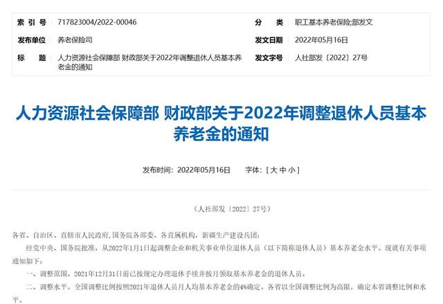 此次养老金调整自2022年1月起执行,预计各省市将于6月底前后陆续完成调整,1-5月份的调整金额将会一并补发。