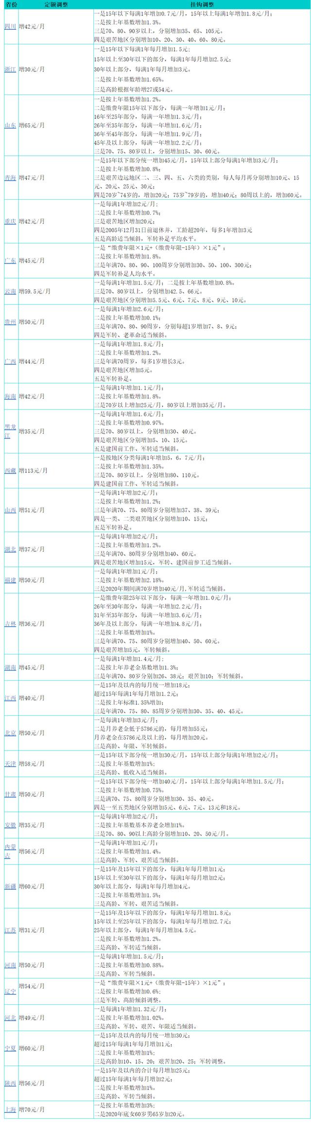 由于各省区市的具体实施方案尚未公布,目前可以参考去年的全国企业退休人员养老金调整方案。