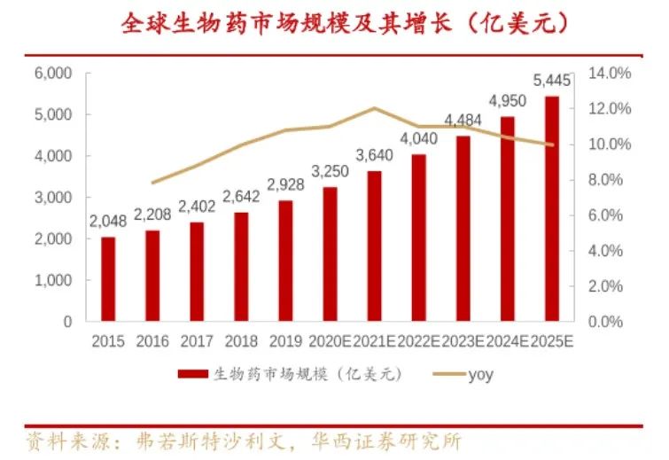 近年随着新技术持续突破,全球生物药市场规模扩容迅速,生物大分子及细胞基因治疗领域研发热情持续提升。