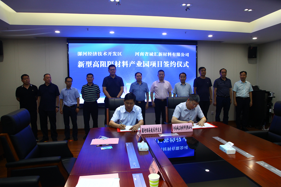 6月8日上午,经开区诚汇新型高阻隔材料产业园项目签约仪式举行,区党工委书记吴玉培,区党工委委员、管委会副主任孙波、区产业集聚区党工委副书记、管委会主任徐天申,区产业集聚区副主任孔祥卫参加。