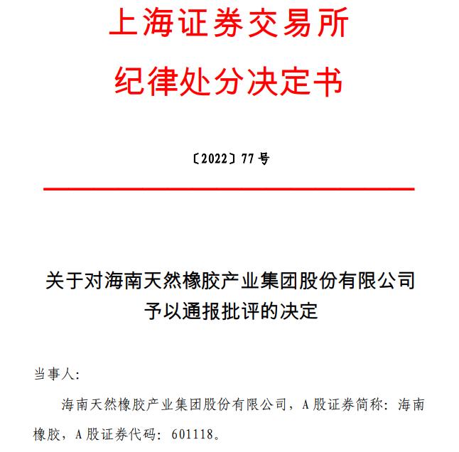 依据有关规定,上交所决定对海南橡胶予以通报批评。