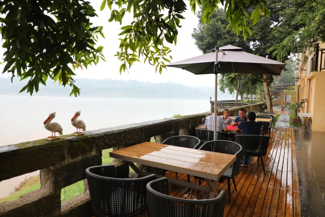 在满足玉石交易的同时,市场还配套了颇具特色的主题民宿,包括特色餐饮、茶艺空间等服务设施,外地来津交易者进入市场可吃、可住、可休闲,更能就近饱览一线临江美景。