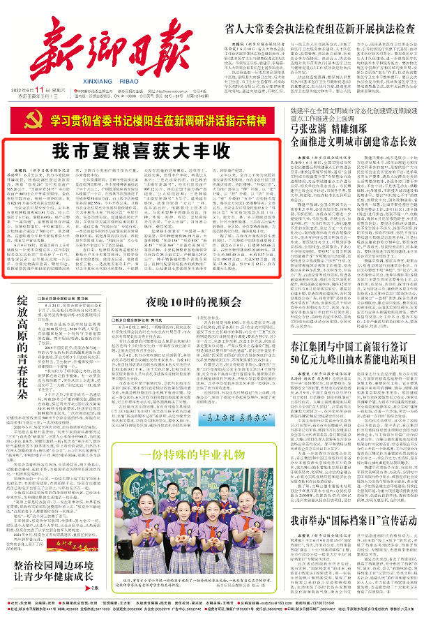 市农业农村局专家介绍,去年我市夏粮种植面积621.91万亩,较上年增加了3万亩,增幅0.48%;成产三要素“一减两增”,亩穗数虽然有所减少,但穗粒数增加、千粒重增加,不少地块亩产超过了700公斤、甚至更高,这意味着今年我市夏粮喜获大丰收,粮食生产首战告捷。